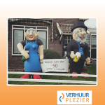 50 jaar getrouwd zijn is natuurlijk een erg lange tijd. In de jaren hiervoor vinden natuurlijk nog enkele bijzondere huwelijksdagen plaats, zoals het 12,5-jarig huwelijk, het 25- en 40-jarig huwelijk. Bij het opblaasbare getrouwde stel leveren wij een leuk en opvallend huwelijksdoek. Deze is niet alleen leverbaar voor een 50-jarig huwelijk, maar ook voor wanneer het stel 12,5, 25 of bijvoorbeeld 40 jaar getrouwd is. Kortom, dit opblaasbare stel is geschikt voor ieder huwelijks jubileum. Geef het getrouwde stel een leuk, verrassend en zeer origineel extraatje met deze opblaasfiguren en laat iedereen weten dat er een groot feest staat te beginnen. Niets is leuker dan om op een opvallende wijze alle gasten van het bruidspaar, en het bruidspaar zelf natuurlijk, te verwelkomen. Huur daarom tegen een voordelig tarief een geweldig opblaasbaar stel voor ieder huwelijksfeest, bij Verhuur Plezier natuurlijk!